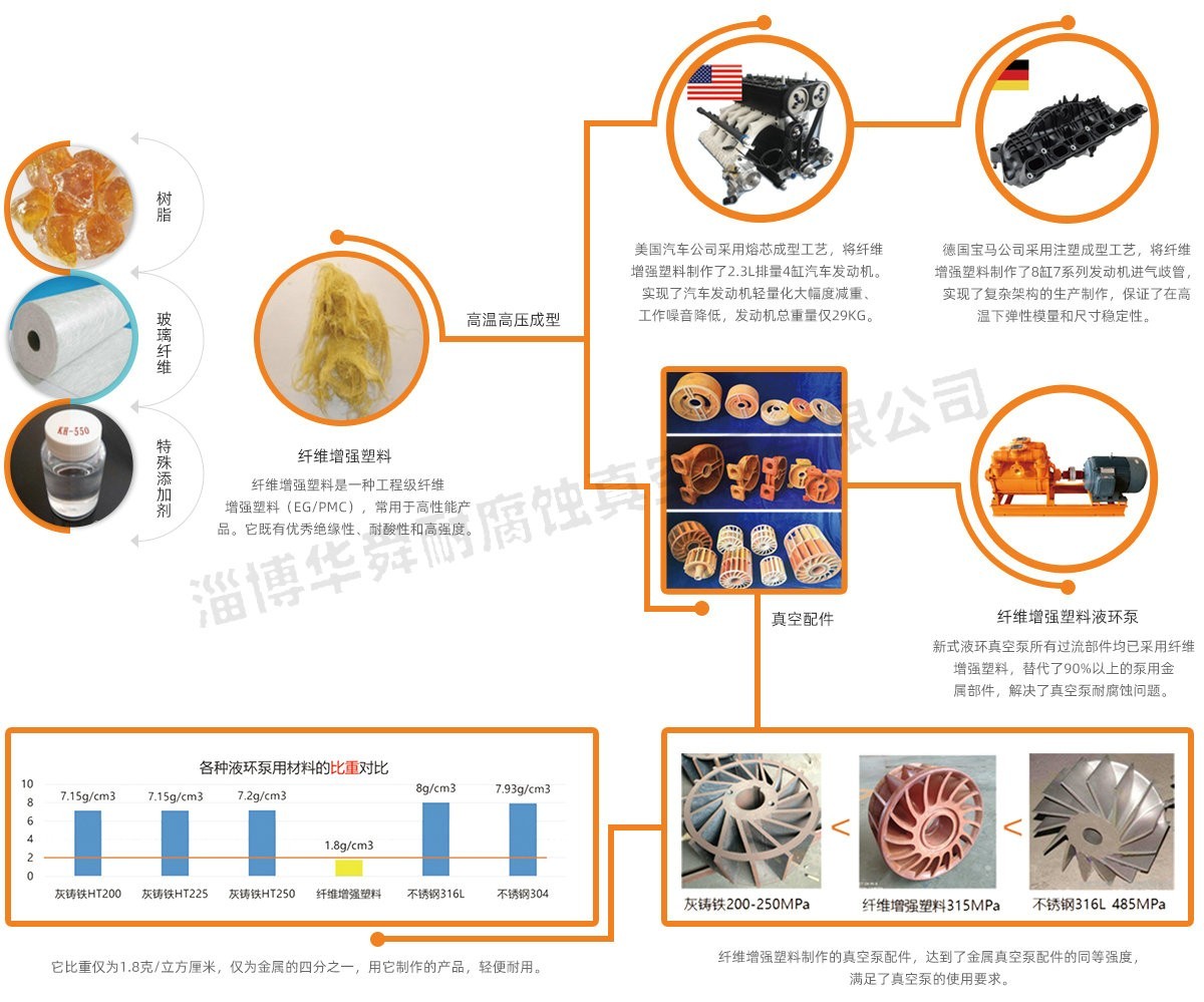 采用高性能复合材料,经高温,高压模具化成型加工制造,具有耐腐蚀范围广、真空度高、在高真空区间抽速大、体积小,重量轻、环保节水、便于维护、运行平稳等特点。