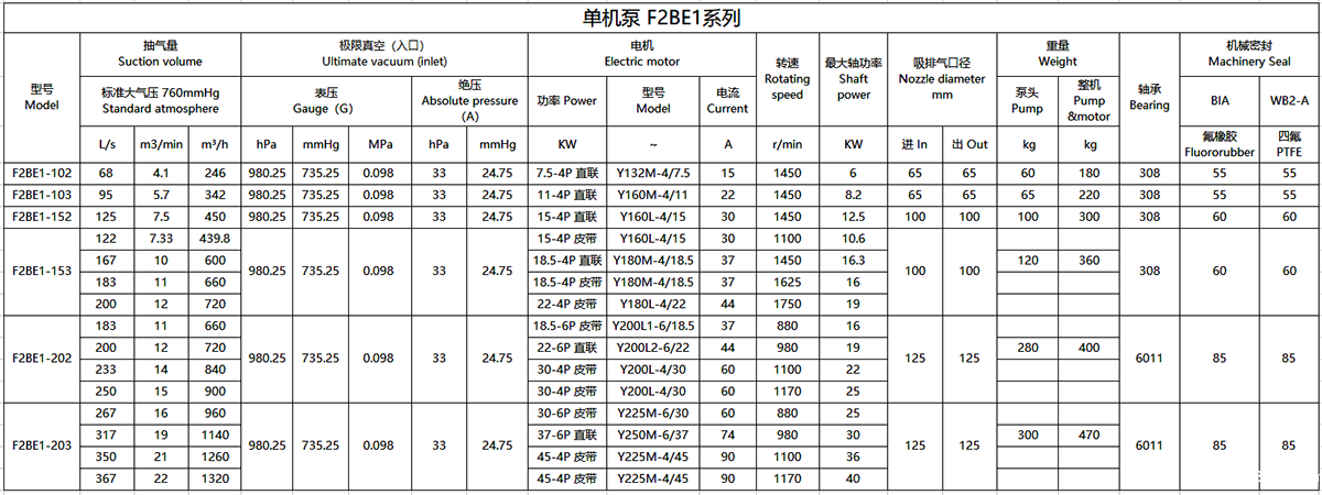 2.上列性能基于进气温度20℃,进水温度15℃,排气压力1013hpa的条件,被吸入气体为饱和空气。(饱和空气是指在对应吸入状态下,其相对湿度为100%的湿空气。)3.抽气速率、轴功率性能允差10%。
